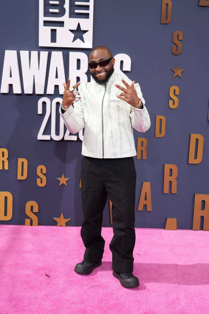 2. Afrobeats star Davido kept it classy in a look by Botter. He accessorized with dark sunglasses and diamond rings.