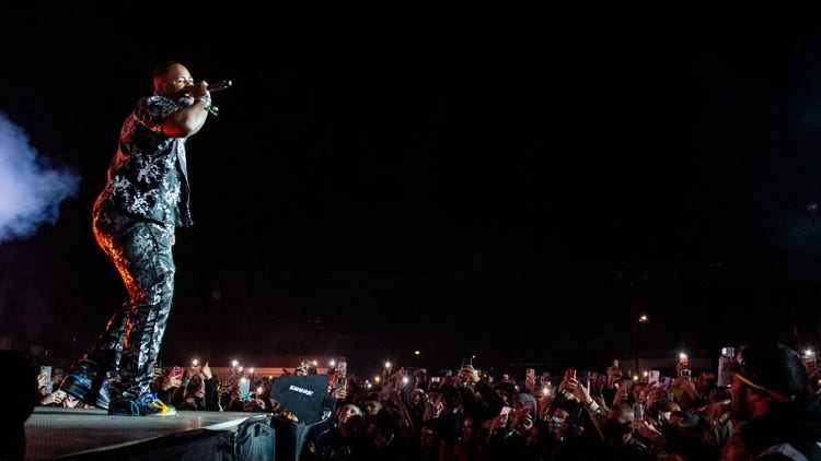 He had a two-day pop-up event. The first day, it was merch sales and a meet-and-greet. On the second day, if you bought merch on the first day or bought a ticket to the performance, you could pull up to this secret location yet to be announced to the general public. It was an intimate show with only a couple of hundred people there. But they were all hardcore Drakeo fans. Everybody knew every single word. All the lights were out, and everybody was recording. Seeing him look like a larger-than-life figure for the first time was wild. That was around July 2021. He had been released from prison about six months earlier.