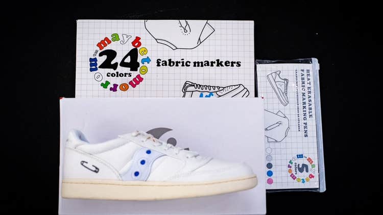 The Saucony x Maybe Tomorrow Jazz Court “DIY” was released on July 14 for $110 and is available now at saucony.com and select retailers.