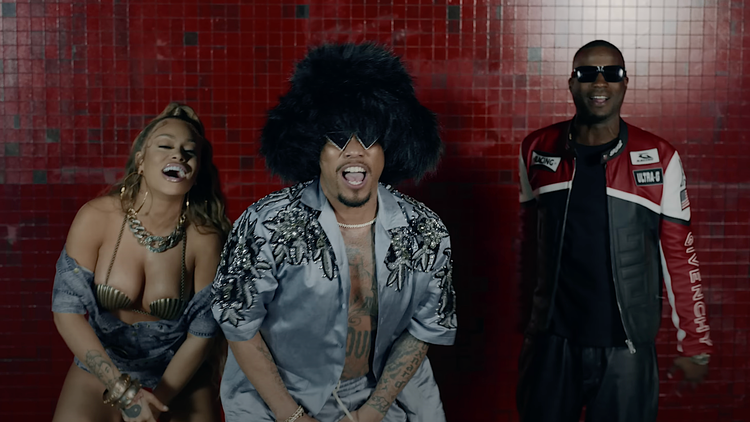 The accompanying clip for “Too Fast (Pull Over)” begins with a shot of an exotic dancer working a pole attached to Rock‘s Mercedes-Benz SUV. Things then move to a pool party, where the artists deliver their rhymes as several women twerk to the music.