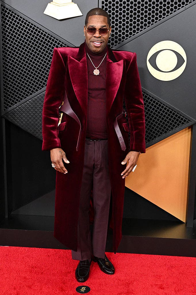 Busta Rhymes hit the red carpet in a burgundy ‘fit that stood out amongst all the other looks. His sharply shouldered and belted Jagne overcoat effortlessly elevated his turtleneck and slacks to the next level. Matching shades and a single necklace completed this memorable moment.