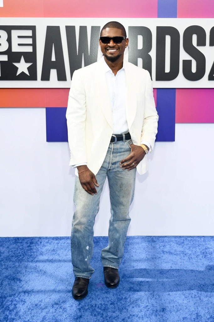Man of the night and Lifetime Achievement Award-winner Usher went for a casual and pared-down Ralph Lauren look that consisted of a white blazer, unbuttoned dress shirt, and jeans. He completed his winning look with black sunglasses and boots for an effortlessly chill appearance.