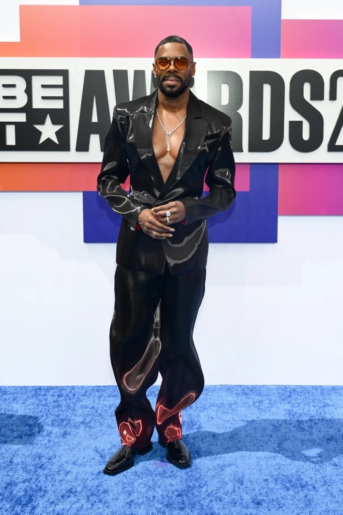 Actor Colman Domingo brought the heat to the blue carpet in a sleek Ferrari fall 2024 two-piece set that looked like luxurious ink. He finished his look with tinted sunglasses and De Beers jewelry.