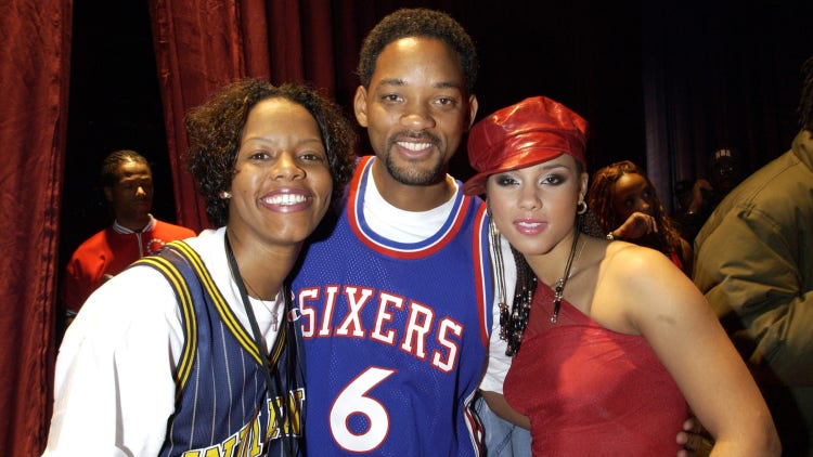 The 2002 NBA All-Star Read to Achieve celebration featured an all-star lineup that included Britney Spears, Will Smith, and Keys. In addition to performing, the latter two also posed backstage with Nikki McCray, who was playing for the WNBA’s Indiana Fever at the time.