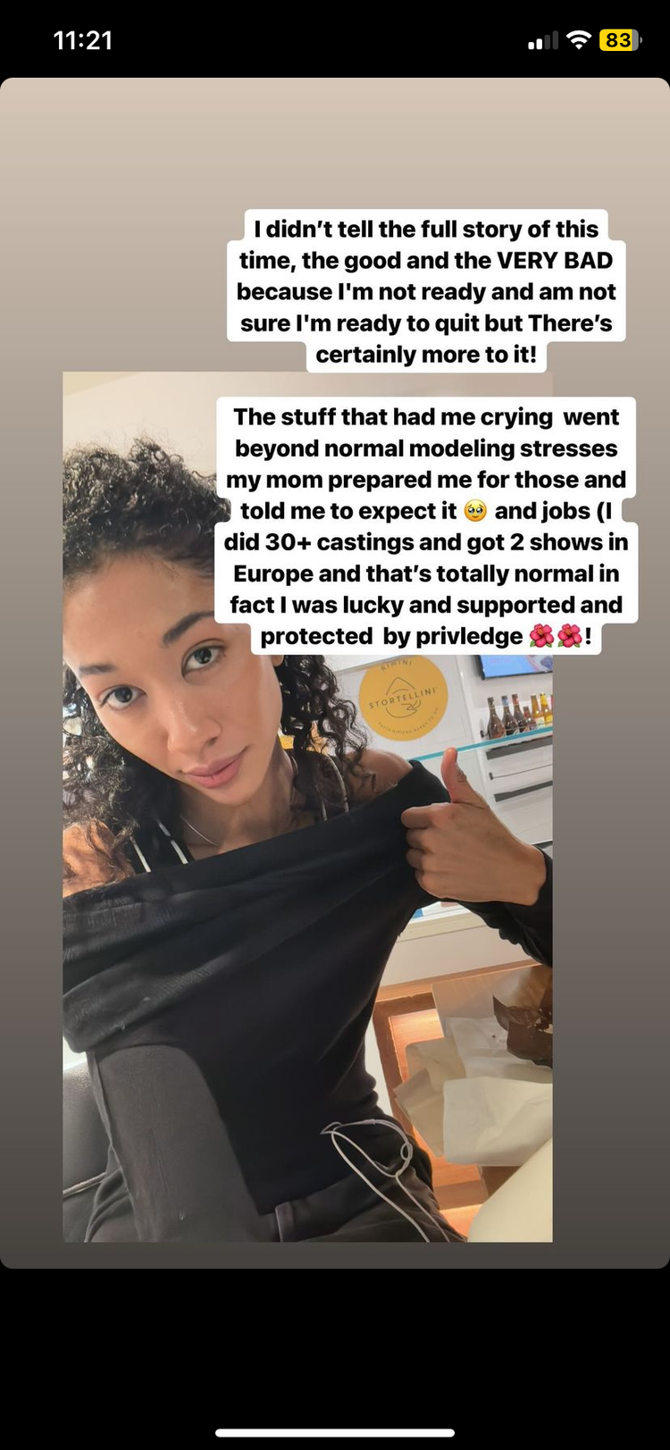 “Hate to say it [and] I hope I don’t sound ridiculous, but I will not be going back to any kind of fashion week unless I’m mentally prepared for it and feel loved and supported. The last one ruined my mental health,” she wrote in the first post shared on Friday (July 5).