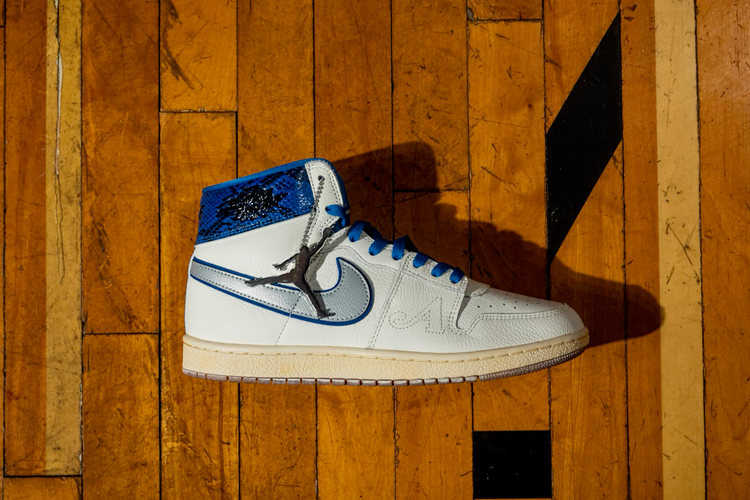 Signature Nike Air branding can be found on the sneaker tongue with Awake’s signature stitched “A” logo on the mudguard, creating a cohesive throughline with the first Airship! Final details include additional “Game Royal” blue laces and an iconic chrome Jumpman pendant to complete the nostalgic feel.