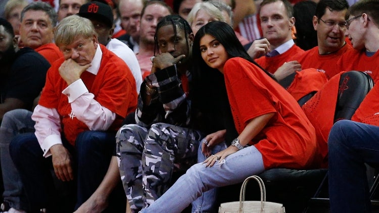 Kylie Jenner and Houston rapper Travis Scott watched courtside as the Rockets hosted Game 5 of the 2017 Western Conference Quarterfinals at Toyota Center in Houston.