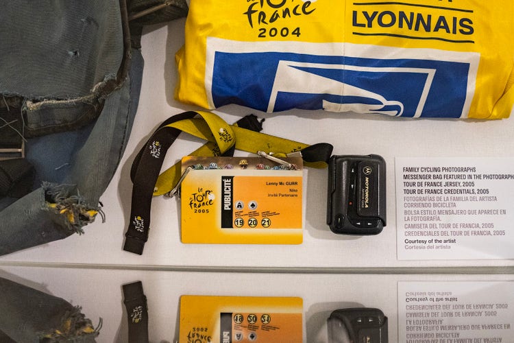 The exhibition also touched on FUTURA’s personal life, letting us in on the man behind the artwork, born Leonard Hilton McGurr. There are family cycling photographs, an old passport, collected baseball cards, a sketchbook from 1980, his Tour de France cycling jersey, credentials, and even the messenger bag from the ride. All in all, making for the most comprehensive look at FUTURA’s five-decade-plus career presented in his hometown, New York City. I left the exhibition with more insight into the artist and the man behind many symbols, who pioneered a distinct abstract approach all the while remaining curious and open to new revolutions as they came.
