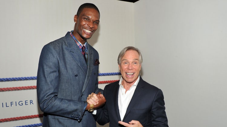 Tommy Hilfiger’s empire is global — but in this photo, he looks like he needs a stepladder just to button Chris Bosh’s blazer. Bosh leans in with a grin, while Tommy points like he just met the tallest person alive (Bosh is 6 feet 11 inches, by the way). The handshake’s solid, but the height contrast steals the spotlight. Who wore it better? Whoever remembered to stand on a box.