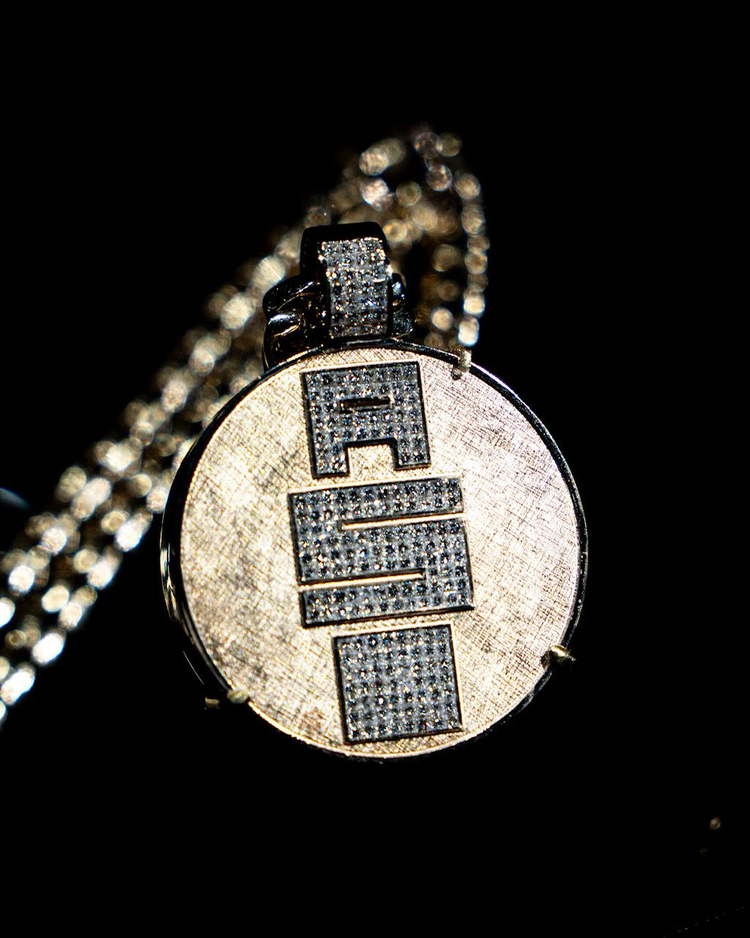 A crowd favorite of the exhibit is Nipsey Hussle's "A$I" (All Money In) necklace by Mike Do of Seoul Jewelry, which represents the label the late rapper founded in 2010 and his entrepreneurial ideologies. The motto "All Money In, No Money Out" centers around his efforts to raise community efficiency and foster economic empowerment. Elsewhere, Nas' "QB" diamond-encrusted chain shines light on the Queensbridge Houses the MC grew up in, in Queens, New York, while DJ Khaled's "We The Best" necklace symbolizes the talent’s record label and one of his most catchworthy phrases.