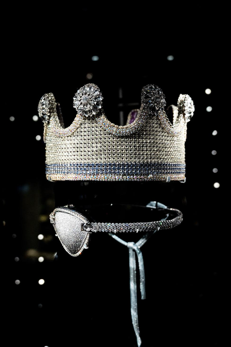The showing opens with jewelry from none other than Slick Rick, the masterful storyteller who has always had a penchant for innovative and bold trinkets. Rick's grandiose and royal style is displayed in his costume jewelry crown piece by Tanya Jones of Lucki Crowns as well as in his legendary custom platinum-and-diamond eye patch designed by Jacob & Co. in 2012, with refinements made by Avianne & Co. in 2023.