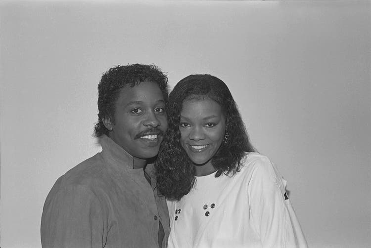 Yarbrough & Peoples (Cavin Yarbrough and Alisa Peoples) pose for a portrait backstage at American Bandstand in June 1984 in Los Angeles, California.