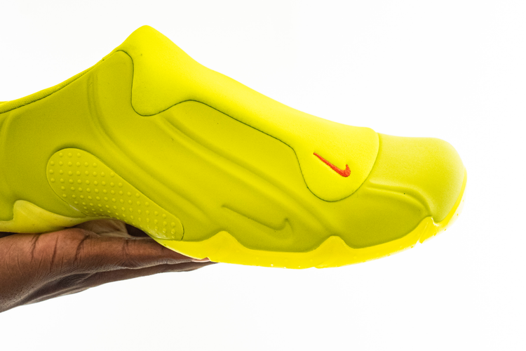 The Clogposite stays true to its slip-on mule silhouette with a neoprene upper completely covered in an eye-catching neon hue aptly named "Bright Cactus.” Although it is monochromatic, the shade fades a bit throughout. It is slightly lighter on its synthetic tongue and a dash darker by the midfoot, with a translucent outsole for a nice finishing touch. Pops of “Picante Red,” courtesy of the iconic Swoosh on the tongue, add flavor to its already spicy build with mesh vents on the medial side. For sizing, it's advised to go up half a size, especially for those with wider feet.