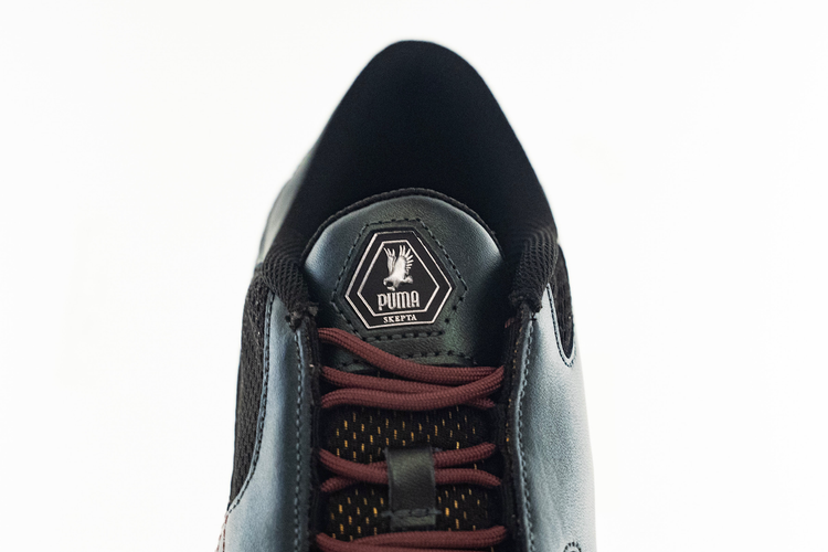 The PUMA Skope Forever is a new footwear style inspired by early 2000s shoe designs and debuting in a special olive green colorway following the release of its black predecessor. It features a reflective emerald green upper with a mesh layer below it for maximum exposure under the light and wine-colored laces that round out its build. PUMA's iconic Formstrip trademark is dotted across its side panel, effortlessly blending in while a crest-like logo on its tongue features a bird and both Skepta and PUMA’s imprint. Silver reflective details offer a finishing touch on the sneaker at its back heel, outsole, and sneaker box, encouraging one to seek their reflection.