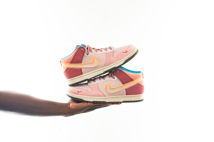 What's up, everybody? We’re officially halfway through the year and it’s the perfect time to take stock of what’s dropped so far. We’ve seen the usual batch of Jordans and Adidas -- both collabs and general releases, and even a few special pairs from niche names like Action Bronson with New Balance and Dingyung Zhang with Adidas. However, I wanted to stroll down memory lane and highlight a special pair of Dunk mids from Nike x Social Status called “Free Lunch Strawberry Milk.” The collaborative pair from founder James Whitner is easily one of the best Dunk Mids to come out in years!