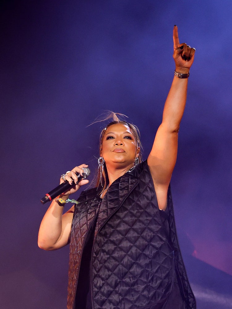 Spiritbox’s Courtney LaPlante joined her early on for their genre-blending collab “TYG,” making for an effective warmup. Midway through her set, the crowd erupted as Queen Latifah appeared onstage. “Plan B” turned into a living tribute as the two legends flowed into a performance of “U.N.I.T.Y.,” a generational moment that had Megan literally throwing her hands up in reverence.