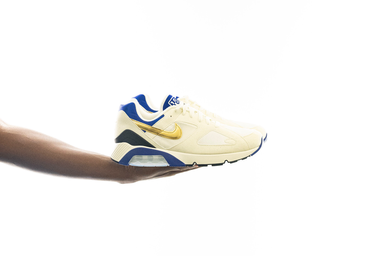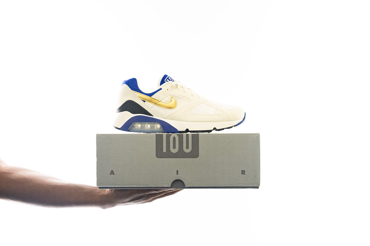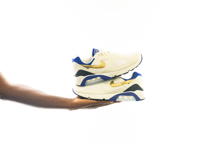 Lastly, no Swoosh sneaker is complete without branding. A bright "180" logo can be found on the tongue with Nike Air branding in corresponding gold at the back heel, while the sneakers are housed in a grey shoe box.