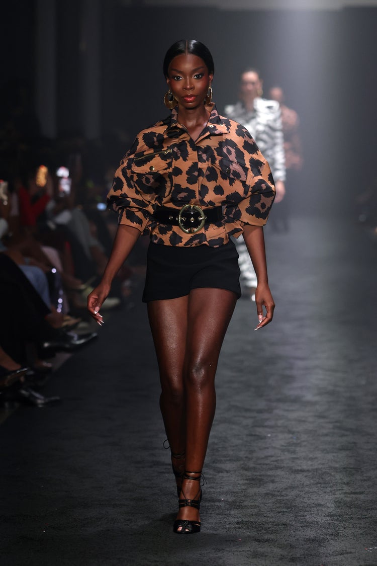 Our jaw was on the floor watching Carthen make her NYFW runway debut at Sergio Hudson’s show. In September 2025, the “Love Island USA” star walked in an animal-print jacket cinched at the waist with a black-and-gold belt. She completed the look with black shorts and strappy sandals.