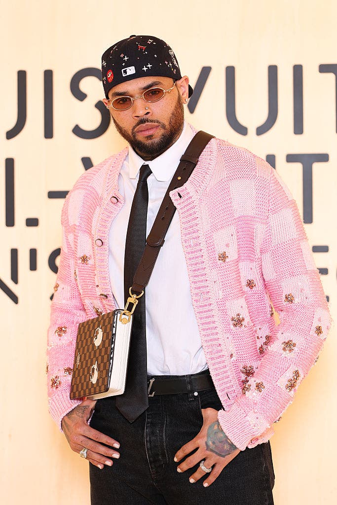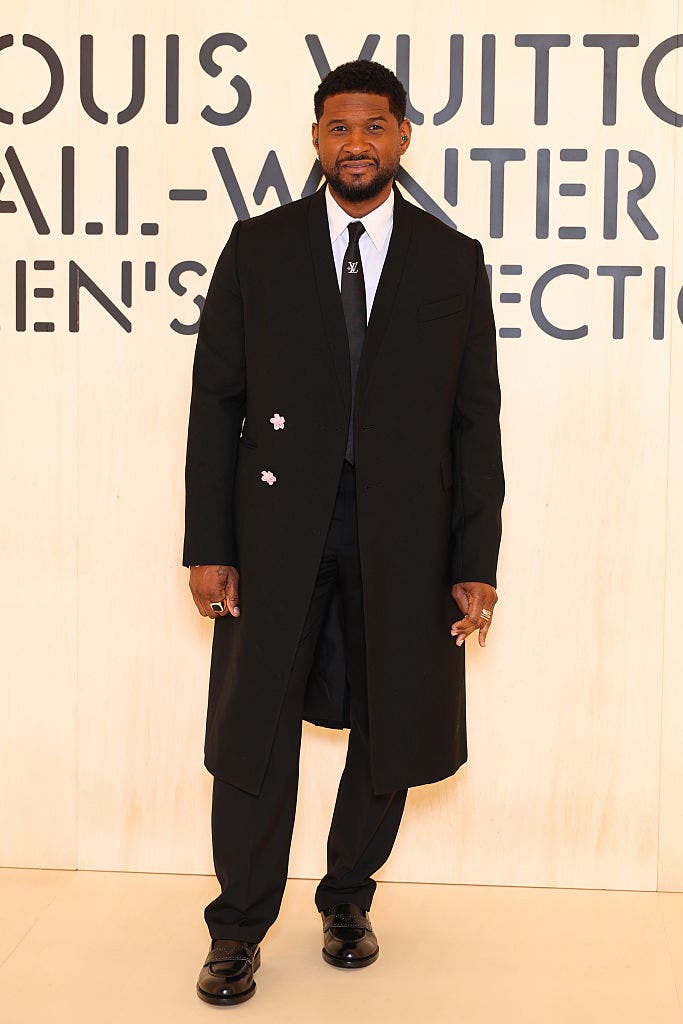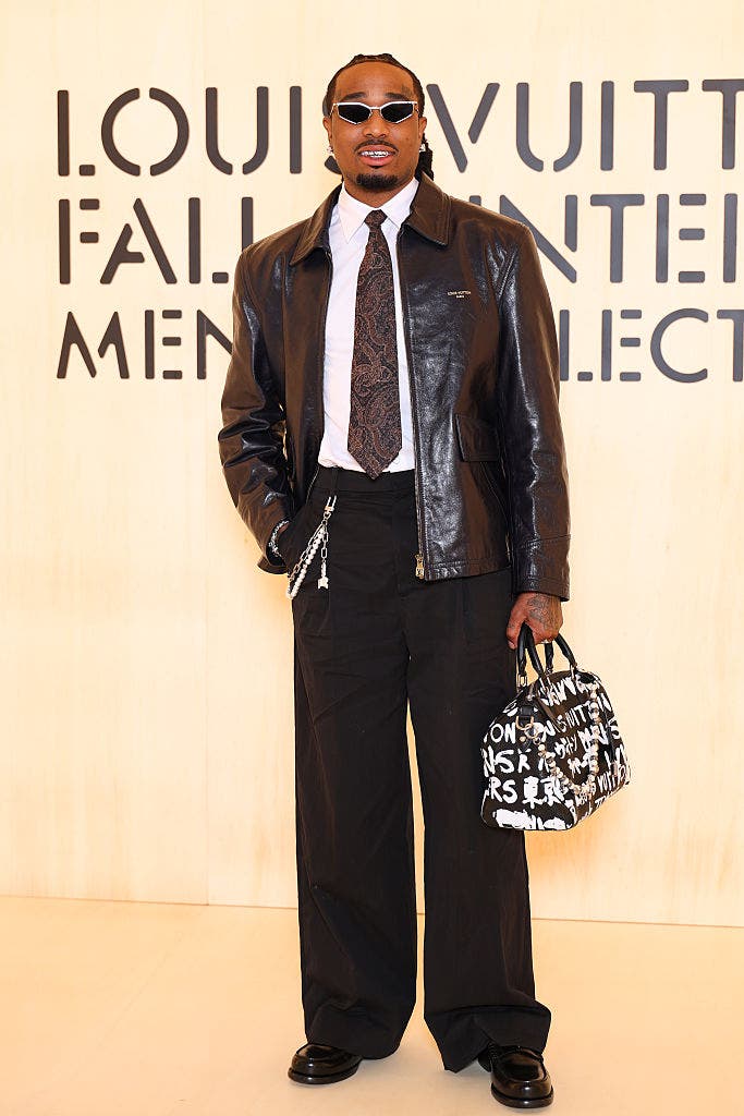 The style moments matched the energy. Usher kept it sleek in a long black peacoat layered over a white tee, finished with a tie and Chelsea boots. Brown brought the color with a fuchsia cardigan, denim jeans, and platform shoes. Quavo showed up in a motorcycle jacket with a paisley tie and grills, while Skepta stayed classic in a black sweater layered over a white-collared shirt. As a Louis Vuitton brand ambassador, Future stuck to his signature look with logo accessories, a plaid puffer, and laid-back denim.