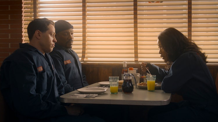 She’s joined by Miguel (Ismael Cruz Córdova) and Banner (Jack Kesy), two muscle-bound partners who clash the minute they meet. With their original driver sidelined (thanks to an accidental self-inflicted gunshot), Zoe makes it clear they’ve got 70 minutes in a signal-free zone to get in and get out. “The take is $60 mill,” she says. Still, the tension is pretty clear: Miguel and Banner don’t trust each other, and Zoe’s got more on her mind than just the cash. Watch below!