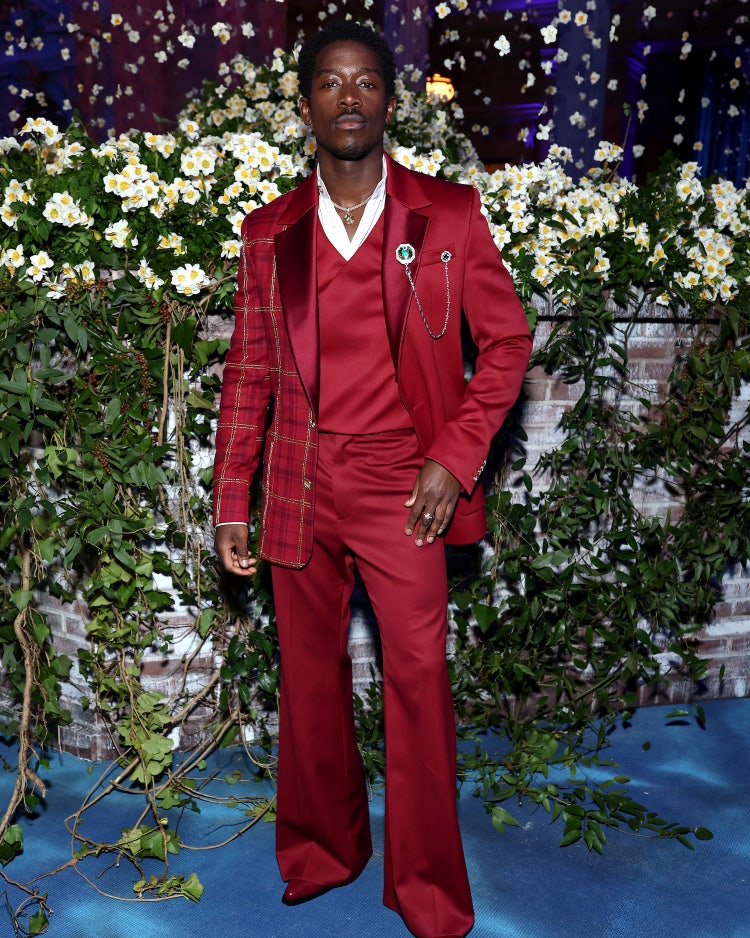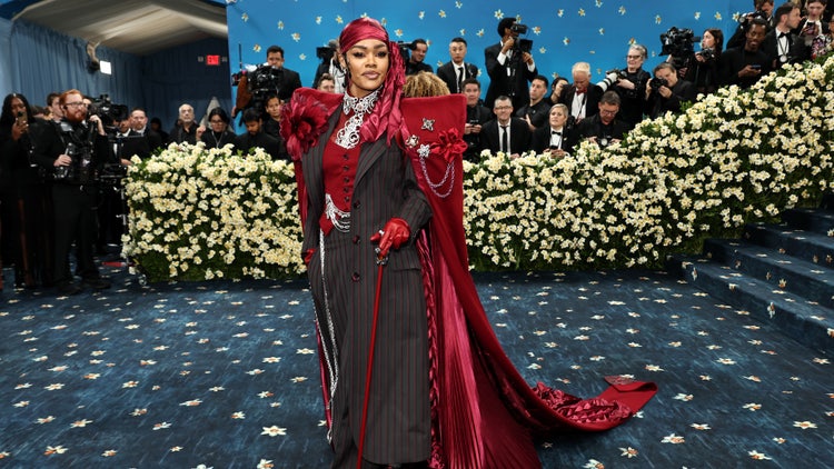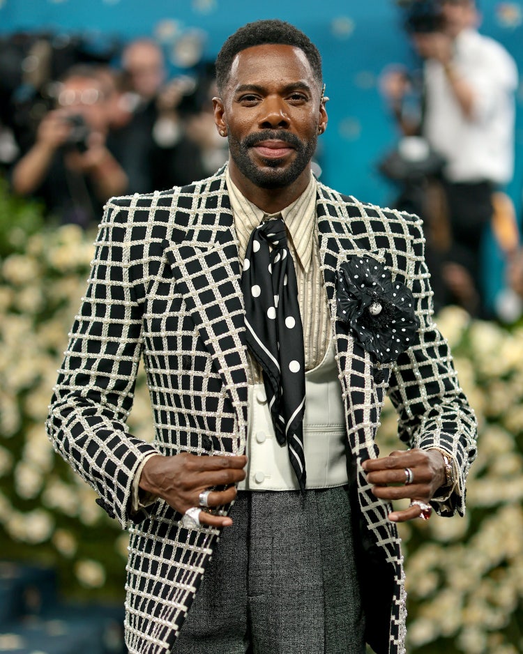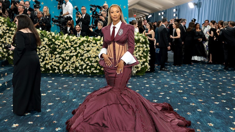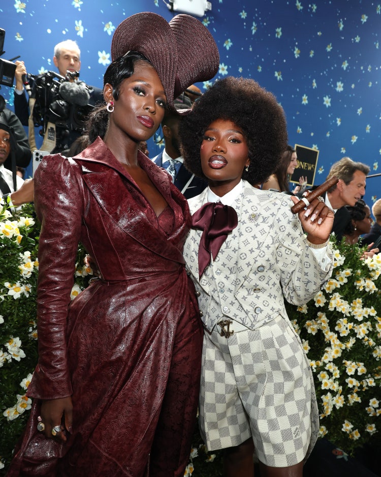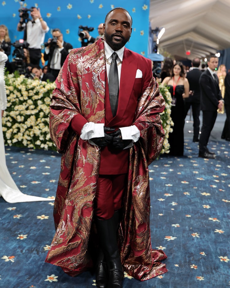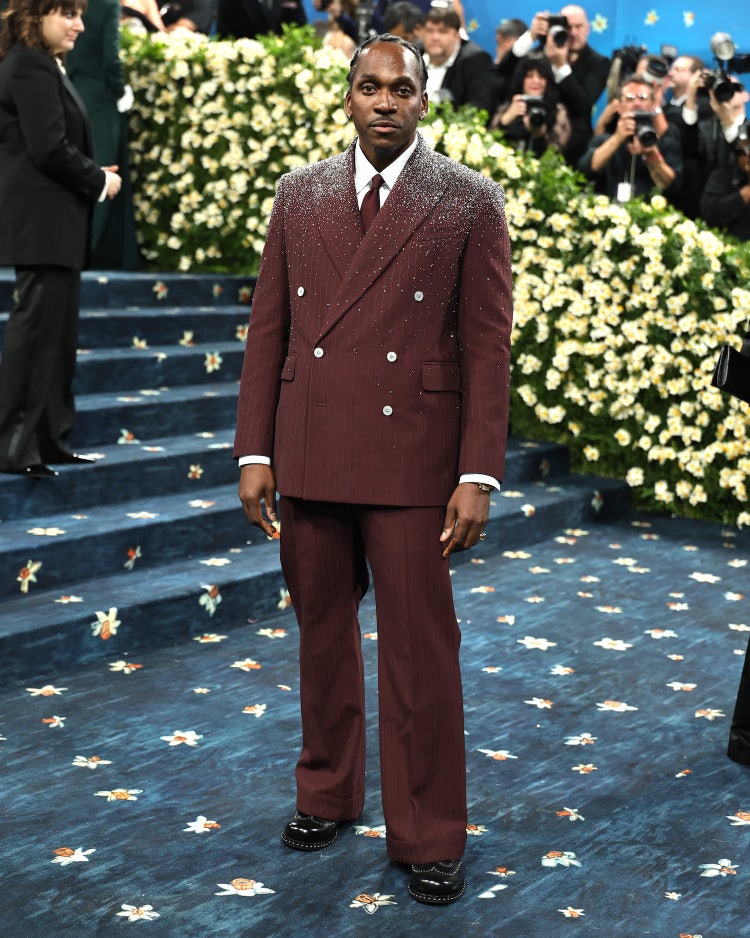 Others also embraced the theme with elegance and edge. Doechii paid tribute to historical Black dandy Julius Soubise in a custom Louis Vuitton ensemble co-designed with Pharrell Williams, featuring monogrammed checkered shorts, a cropped blazer, a maroon bow tie and calf-length socks (Pharrell also crushed it in a jacket made entirely out of pearls. Savannah James, attending solo after husband LeBron pulled out due to a knee injury, stunned in a tailored burgundy pin-striped gown by Hanifa, featuring a corset bodice and classic suit elements. Colman Domingo was Colman Domingo on a Monday, donned in an outfit that pulled inspiration from the theme and André Leon Talley. Dapper Dan, long overdue for Met recognition, designed and wore a black and white suit featuring the Sankofa symbol, reflecting his Harlem roots and the overall theme. Check out some other pics below.