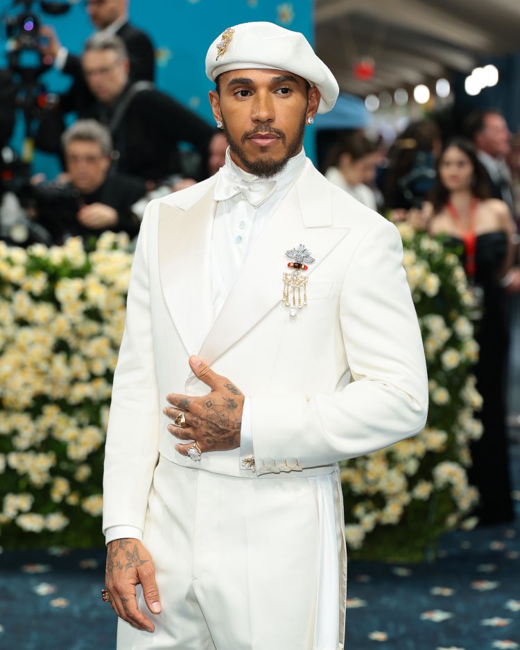 After striking a few poses, Idris pulled off one of the night’s most dramatic reveals: With help from two assistants, the suit was torn away to unveil a sharp three-piece ensemble in red and gold plaid, also by Hilfiger. In addition to the obvious, the outfit paid respect to Met Gala co-chair Lewis Hamilton, who served as a producer on the film.