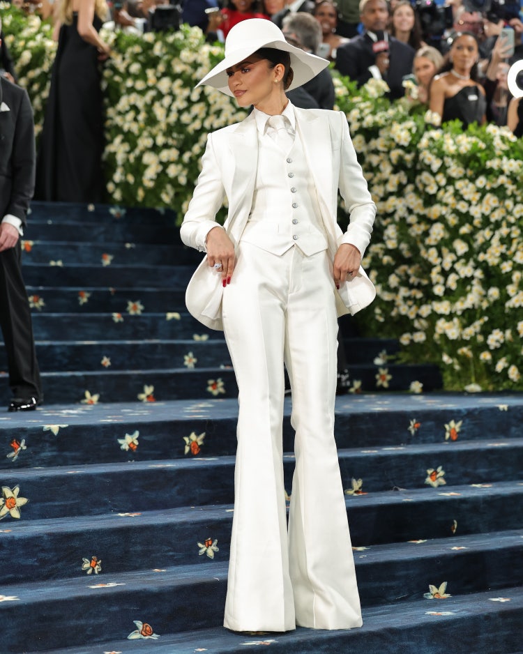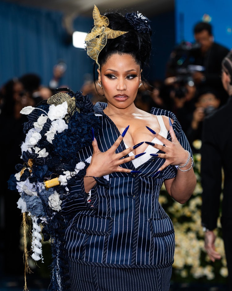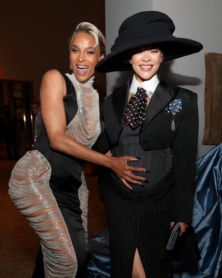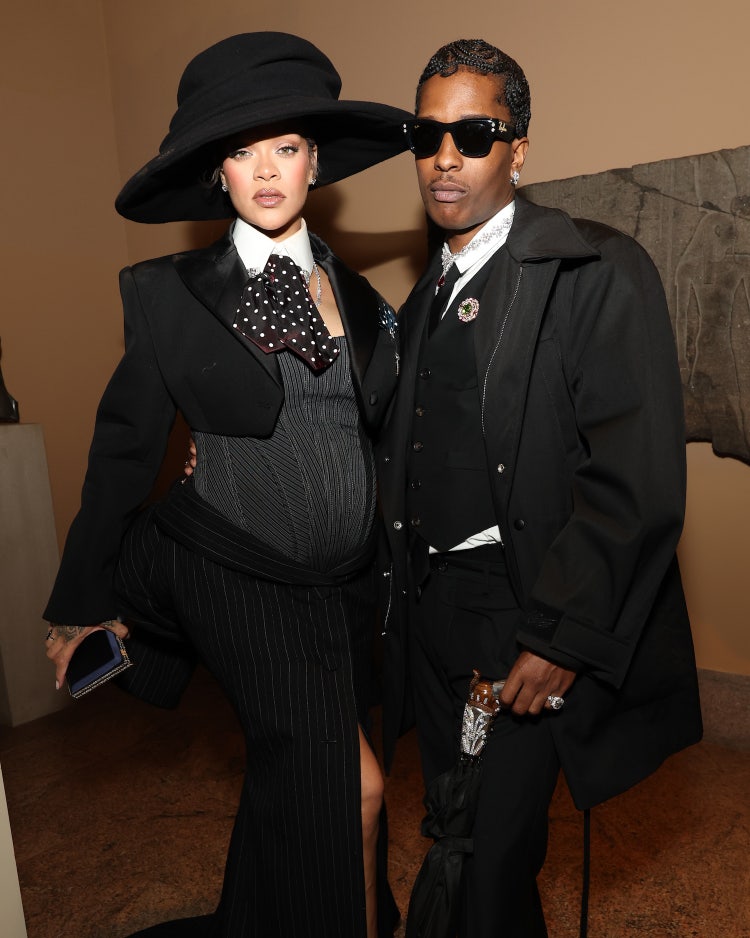 Rihanna pulled up fashionably late (as is tradition) rocking a custom Marc Jacobs ensemble, topped with a Stephen Jones brimmed hat. What was immediately noticeable was the Fenty boss’ baby bump, a confirmation of her third pregnancy with gala co-chair ASAP Rocky. Even her former Twitter foe Ciara couldn’t help but share in the reveal joy. Just another effortless way she transformed maternity wear into a fashion moment. Again.