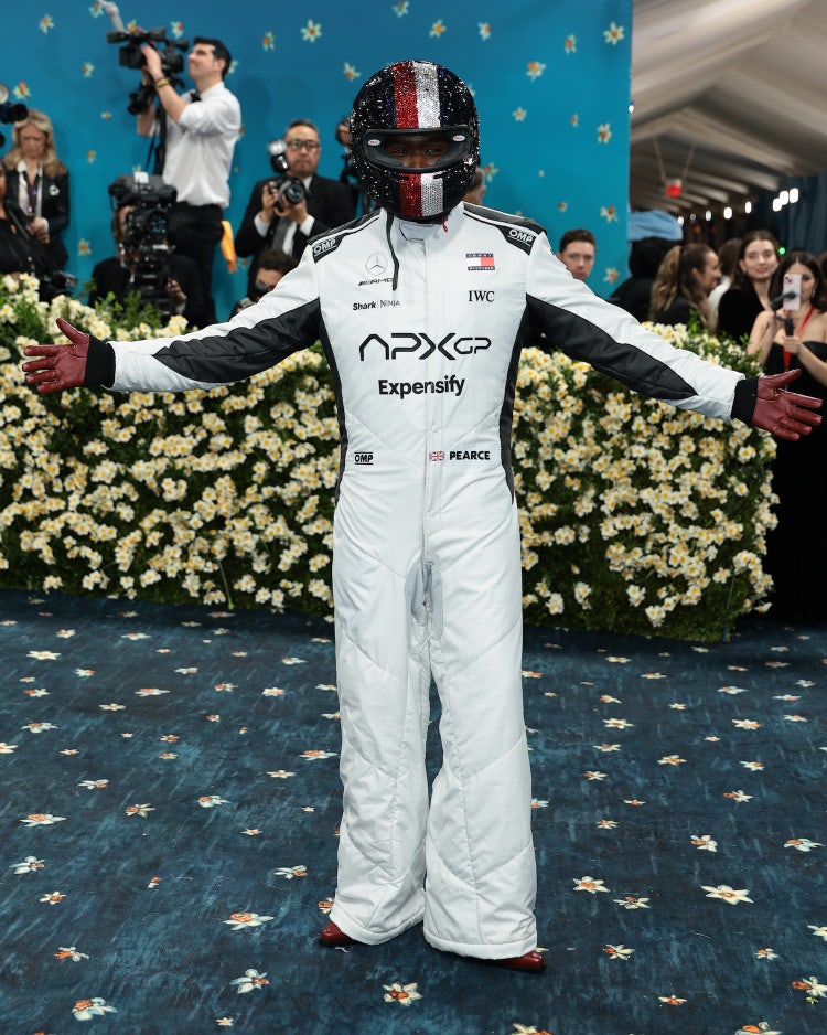 Damson Idris pulled up to the Met Gala like he was headed straight for the Grand Prix. The “Snowfall” star — and co-lead in the upcoming Formula 1 film alongside Brad Pitt — arrived in a Tommy Hilfiger-branded race car, stepping out in a full crystal-studded racing suit and helmet.