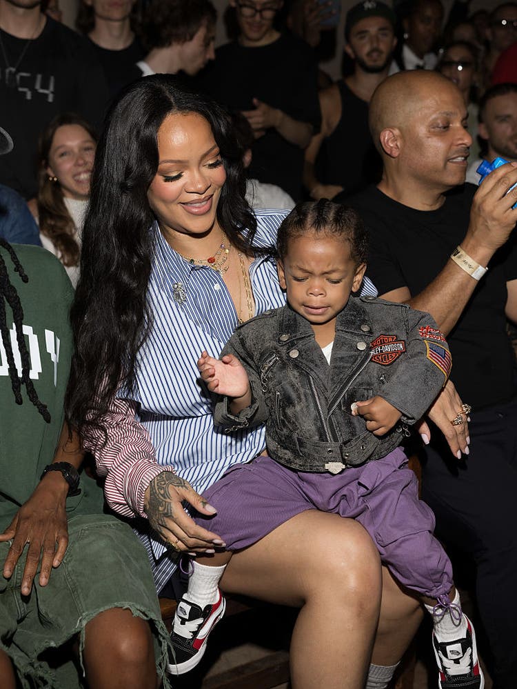 - Rihanna’s Paris Fashion Week appearance included a front-row moment with son Riot Rose at ASAP Rocky’s AWGE show.