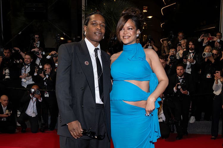 Rihanna is already turning the streets of France into her runway ahead of designer presentations for Paris Fashion Week in June. She had fans smitten with her Smurf blue dress with cut-outs, revealing her growing baby bump, as she posed for photos with ASAP Rocky at the 78th Cannes International Film Festival on Monday (May 19). The rapper’s new flick, Highest 2 Lowest, starring Denzel Washington and directed by Spike Lee, premiered at the annual event.