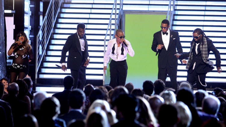 Nine months pregnant and due the same day, M.I.A. rocked out in a custom polka-dotted bodysuit that sent social media and blogs into a frenzy. Her belly popped. The beat hit. The rappers took turns delivering their verses. It was the kind of event that rarely happens anymore. Add in the fact that the song won Best Rap Performance by a Duo or Group and was nominated for Best Rap Song.